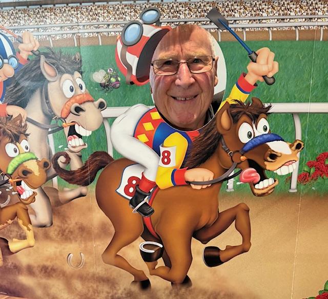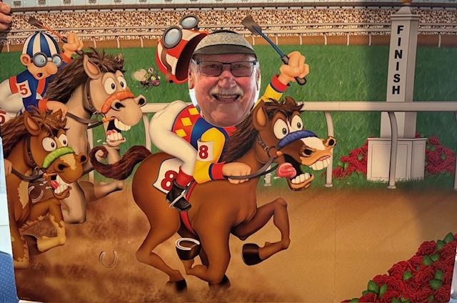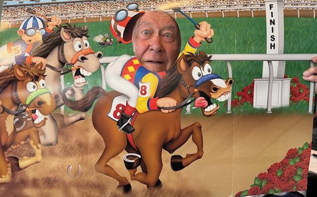 Graham Kane conducted operations arranging a photo mock-up for members to pose, A sweep prior to the cup with the Mudgeway’ s scooping up 3 of the six prizes, two videos of mock Melbourne Cups, and Fashions on the Field. The “Parenting the Teenagers Maiden” race was won by “Put that Bloody Phone Down” with Sohrab Bhopti winning the prize, and “The Greatest Race Never Run” was won by Phar Lap with Esther Murray winning the prize. Given comments about favouritism, we had to call in the Stewards!